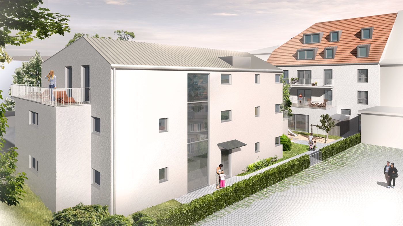 3D-Illustration Neubau Mehrfamilienhaus in Vilsbiburg, Bayern, - Visualisierung Modelldigital Lübeck