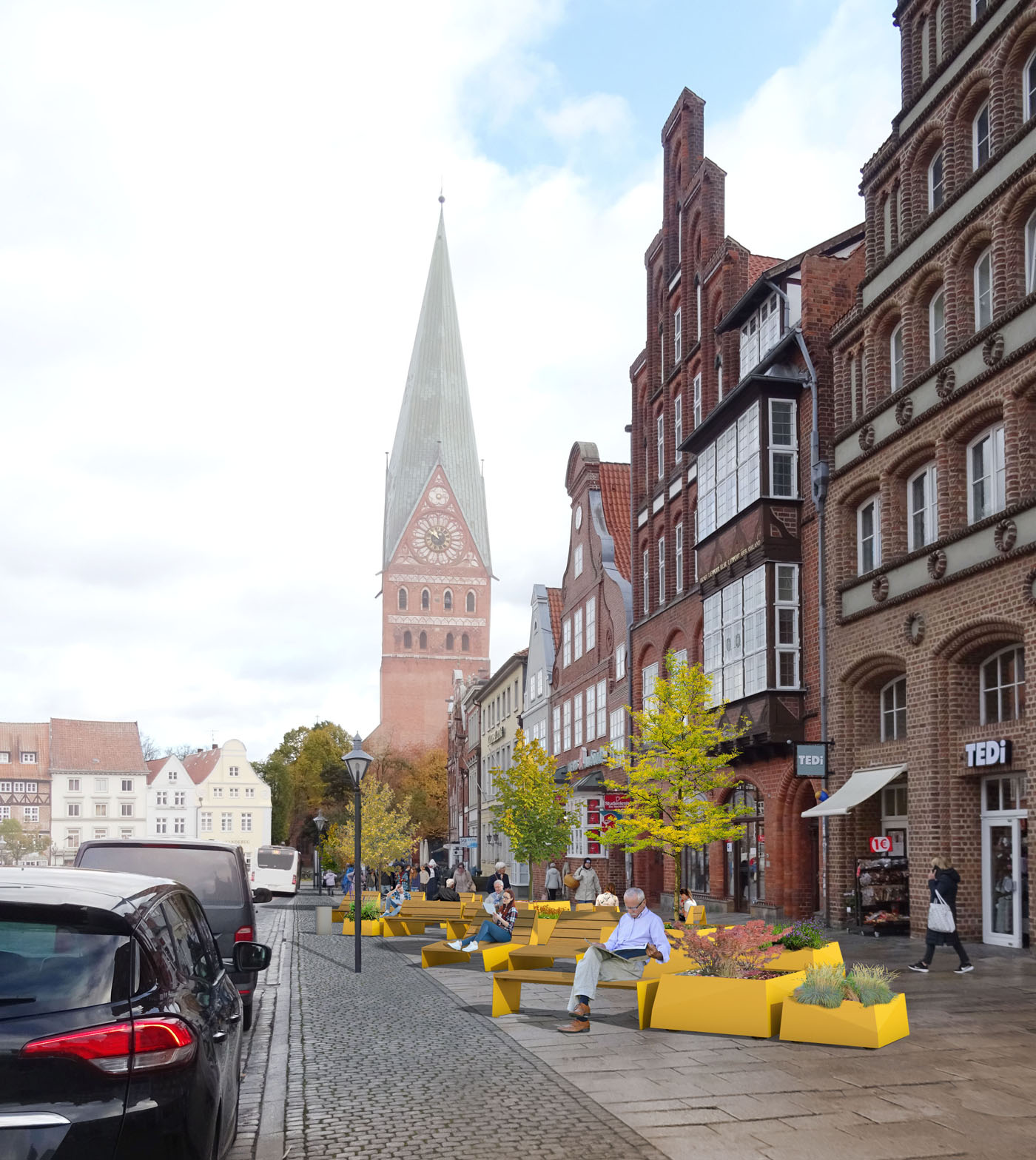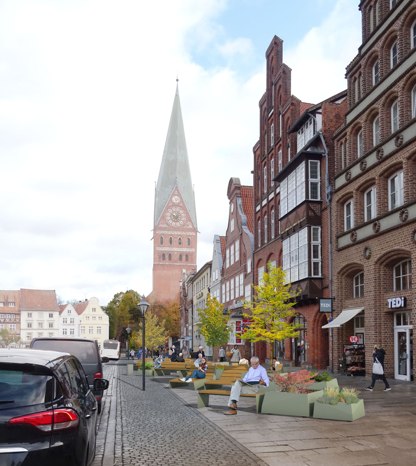 ENTWÜRFE ZUR NEUGESTALTUNG IN LÜNEBURG - VISUALISIERUNGEN VON MÖBLIERUNGSVARIANTEN MIT VETRE-STADTMÖBELN ALS ENTSCHEIDUNGSHILFE FÜR MATERIAL UND RAUM